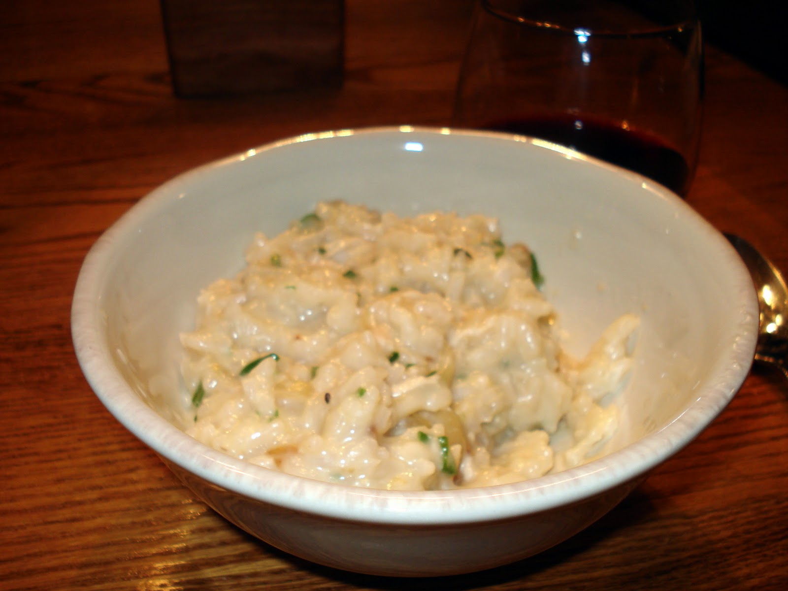 Add 3/4 cup of the hot broth mixture to the risotto and stir gently and constantly until the risotto becomes creamy, about 3 minutes. Stir in the Parmesan. Remove the pot fro the hat, cover and let stand for 5 minutes.